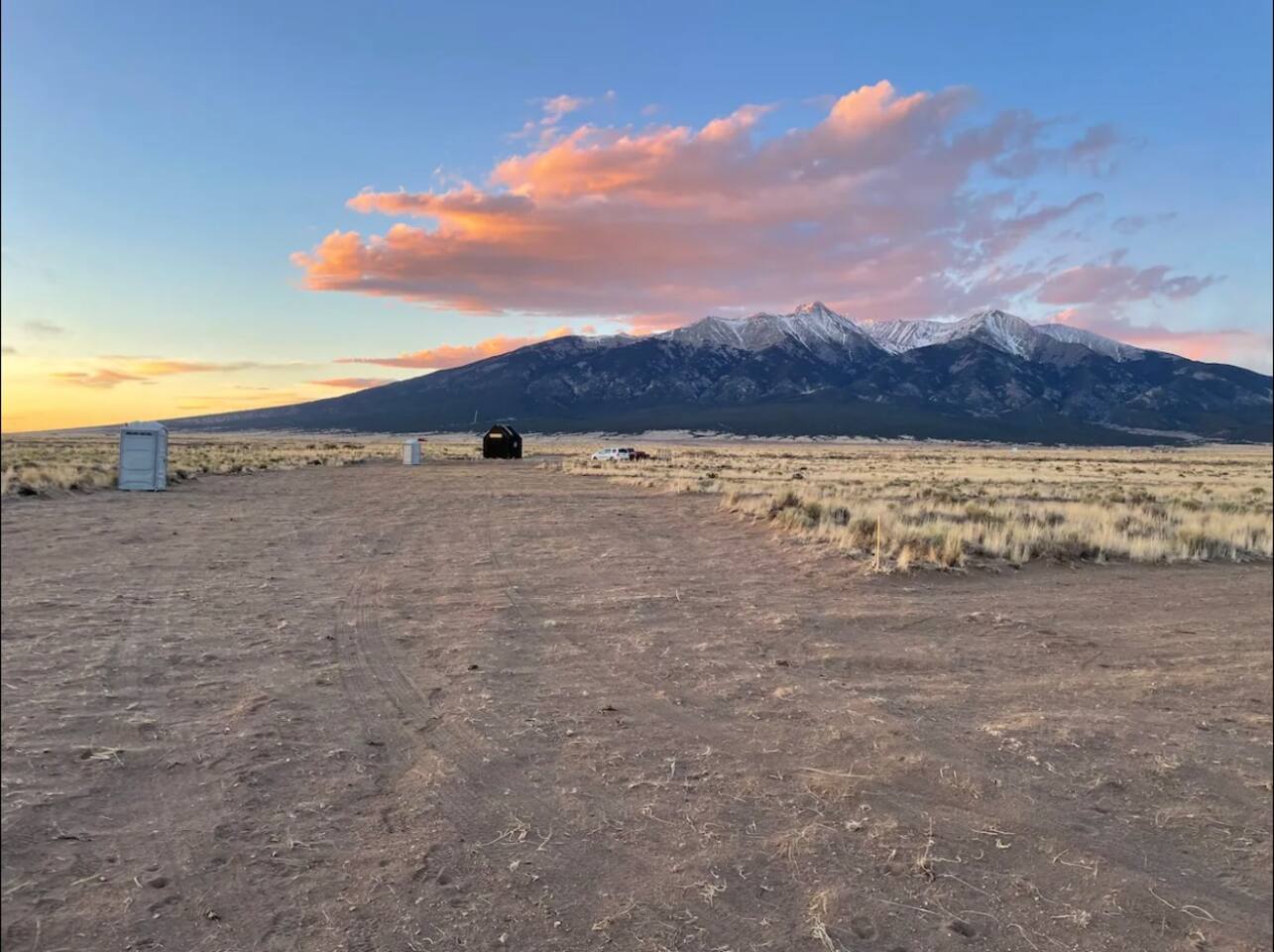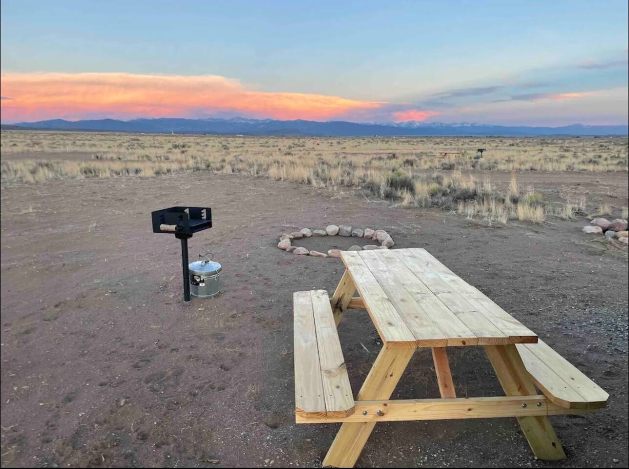 This beautiful camp spot has views of Mount Blanca. Simple living off the grid and enjoying nature. Bench, fire pit, and grill for convenience. Port a potty as well. This takes you back to a simpler time.
