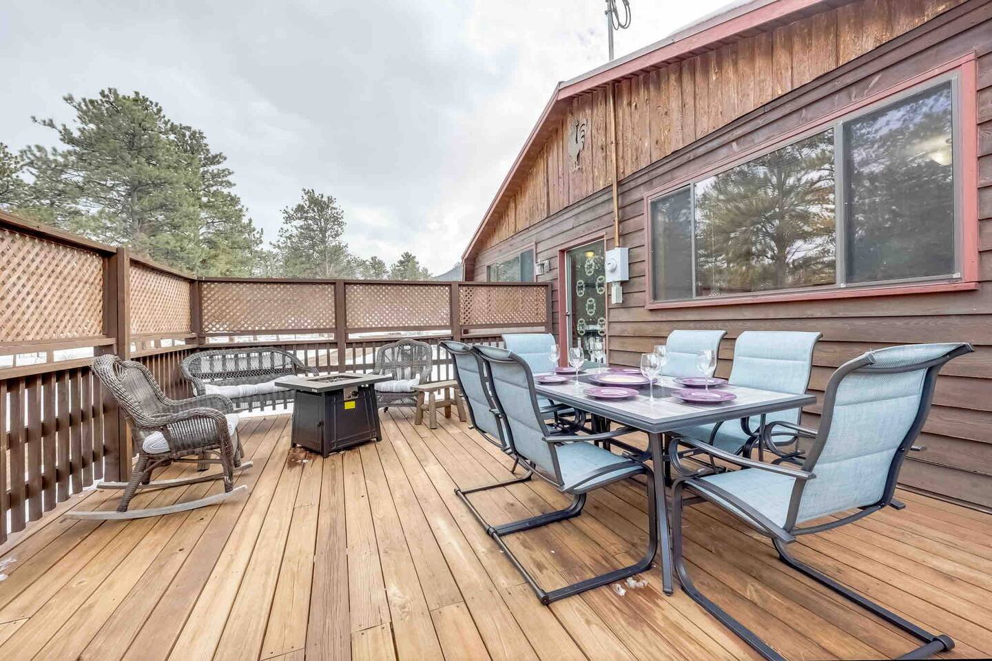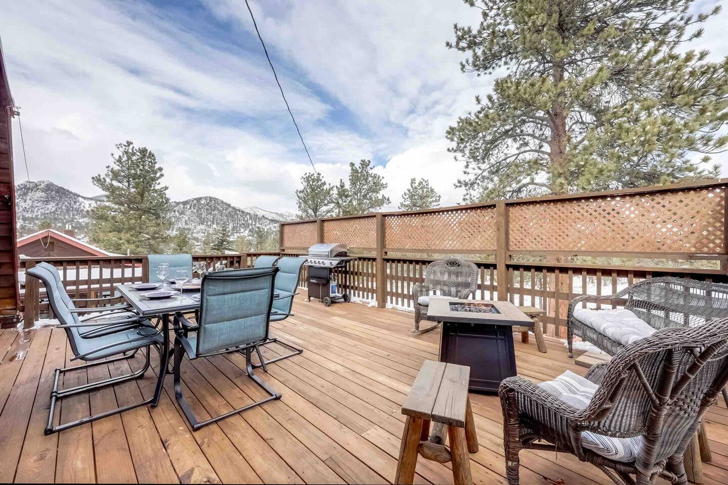 Welcome to our spacious and luxe 12-guest house in scenic Estes Park, Colorado. ✔ Outdoor Dining Area w/ Mountain Views ✔ Fire pit for cozy gatherings ✔ 8 Minute drive from The Water Wheel ✔ 3 Minute drive from Open Air Adventure Park ✔ 7 Minute drive from The Birch Ruins ✔ Poker Table ✔ Darts ✔ Arcade ✔ Ping-Pong ✔ Large Sofa and TV